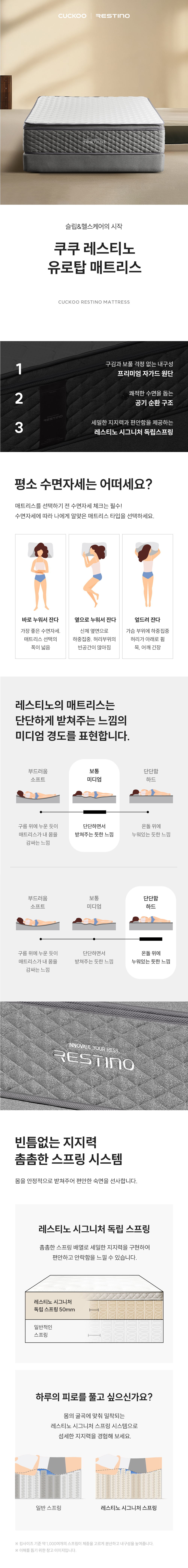 쿠쿠 CRM-C01SE 레스티노 라지킹 매트리스 렌탈 CRM-C01SE 6년약정: 월28,900원 5년약정: 월30,900원 제품크기 : 1,800 x 2,000 x 320 mm 주요기능 : 라지킹, 자가드원단, 미디엄경도, 하드경도, 매트리스케어, 독립스프링 설치형태 : 옵션: 미디엄MLK / 하드 HLK 방문주기 : - 의무사용기간 : 6년 소유권 이전기간 : 6년 등록설치비 : 면제 렌탈요금 : 월 28,900원 제휴카드 : 월 15,900원 온라인 렌탈문의 네이버 톡톡 이전글 다음글 목록 상품특징 본문 이전글 다음글 목록