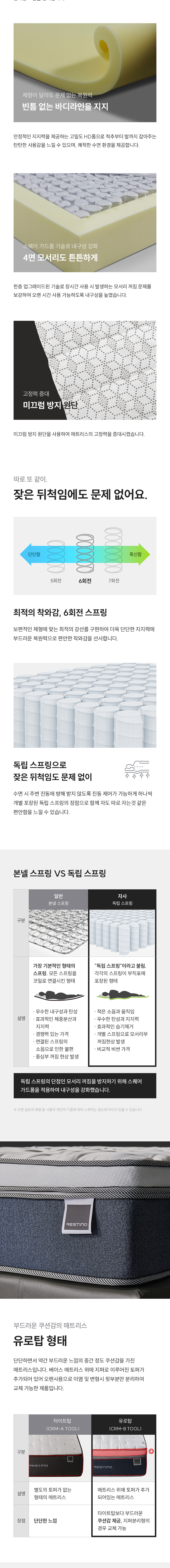 제품크기 : 1,500 x 2,000 x 340 mm 주요기능 : 퀸, 미디엄경도, 매트리스케어, 독립스프링, 고탄력폼 방문주기 : 6개월방문관리/ 셀프관리 의무사용기간 : 6년 소유권 이전기간 : 6년 등록설치비 : 면제 |