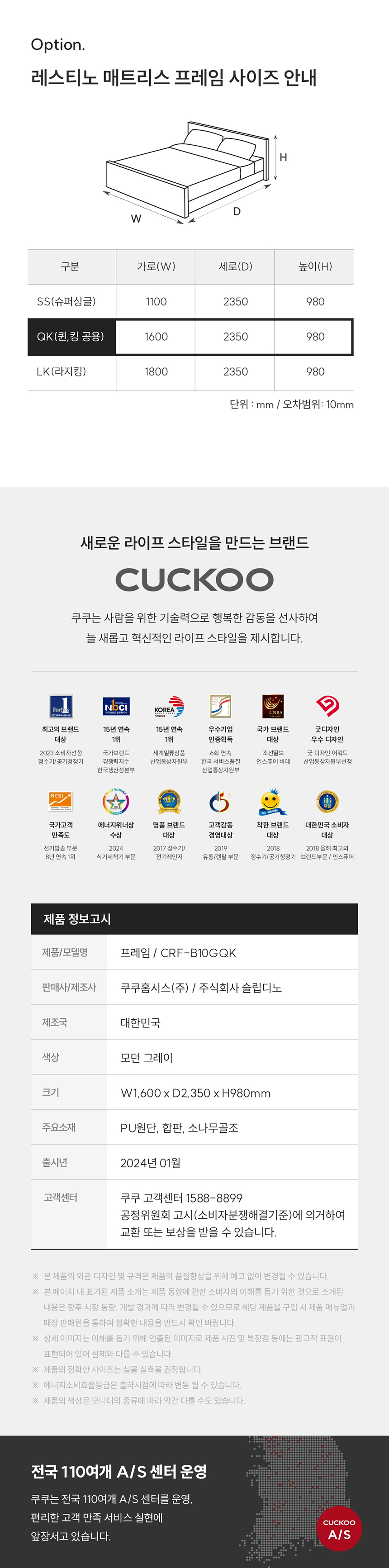 쿠쿠 CRF-B10GQK 레스티노 퀸 킹 프레임 렌탈 CRF-B10GQK 모던그레이 6년약정: 월26,900원 5년약정: 월29,900원 제품크기 : 1,600 x 2,350 x 980 mm 주요기능 : 킹, 퀸 방문주기 : - 의무사용기간 : 6년 소유권 이전기간 : 6년 등록설치비 : 면제 렌탈요금 : 월 26,900원 제휴카드 : 월 13,900원 온라인 렌탈문의 네이버 톡톡 이전글 다음글 목록 상품특징 본문 이전글 다음글 목록