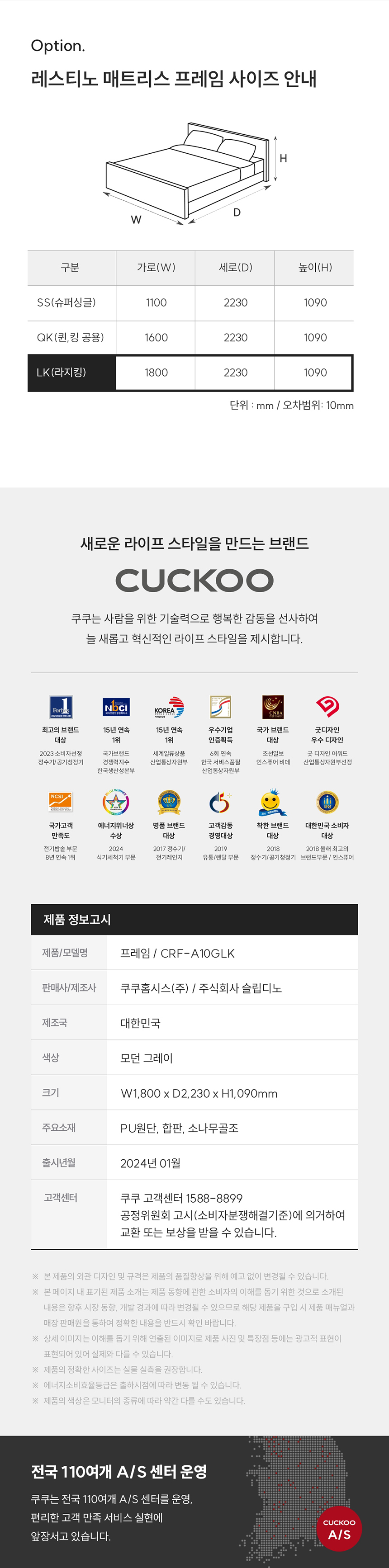 쿠쿠 CRF-A10GLK 레스티노 라지킹 프레임 렌탈 CRF-A10GLK 모던그레이 6년약정: 월27,900원 5년약정: 월30,900원 제품크기 : 1,800 x 2,230 x 1,090 mm 주요기능 : 라지킹 방문주기 : - 의무사용기간 : 6년 소유권 이전기간 : 6년 등록설치비 : 면제 렌탈요금 : 월 27,900원 제휴카드 : 월 14,900원 온라인 렌탈문의 네이버 톡톡 이전글 다음글 목록 상품특징 본문 이전글 다음글 목록