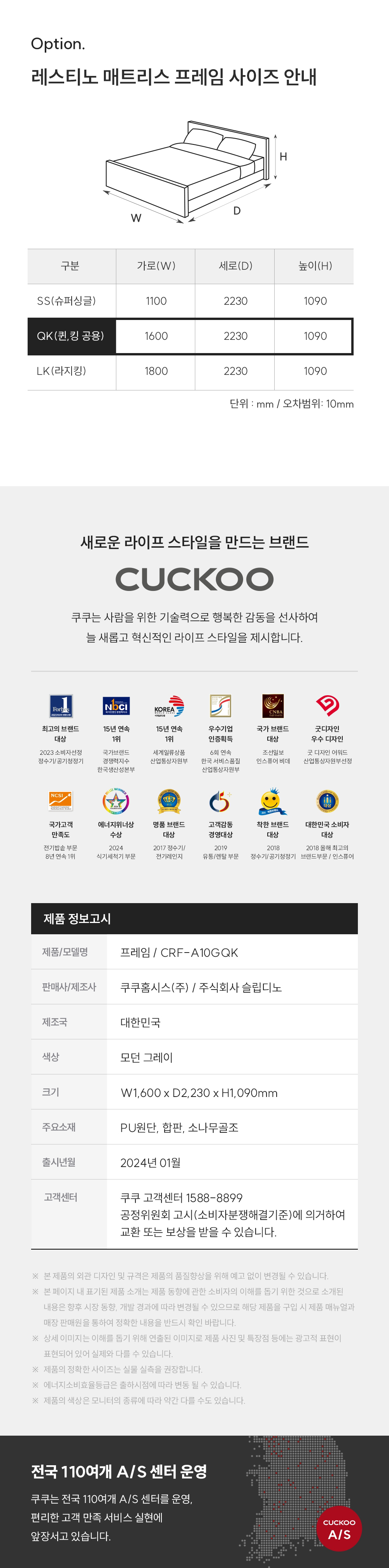 쿠쿠 CRF-A10GQK 레스티노 퀸 킹 프레임 렌탈 CRF-A10GQK 모던그레이 6년약정: 월22,900원 5년약정: 월25,900원 제품크기 : 1,600 x 2,230 x 1,090 mm 주요기능 : 킹, 퀸 방문주기 : - 의무사용기간 : 6년 소유권 이전기간 : 6년 등록설치비 : 면제 렌탈요금 : 월 22,900원 제휴카드 : 월 8,900원 온라인 렌탈문의 네이버 톡톡 이전글 다음글 목록 상품특징 본문 이전글 다음글 목록