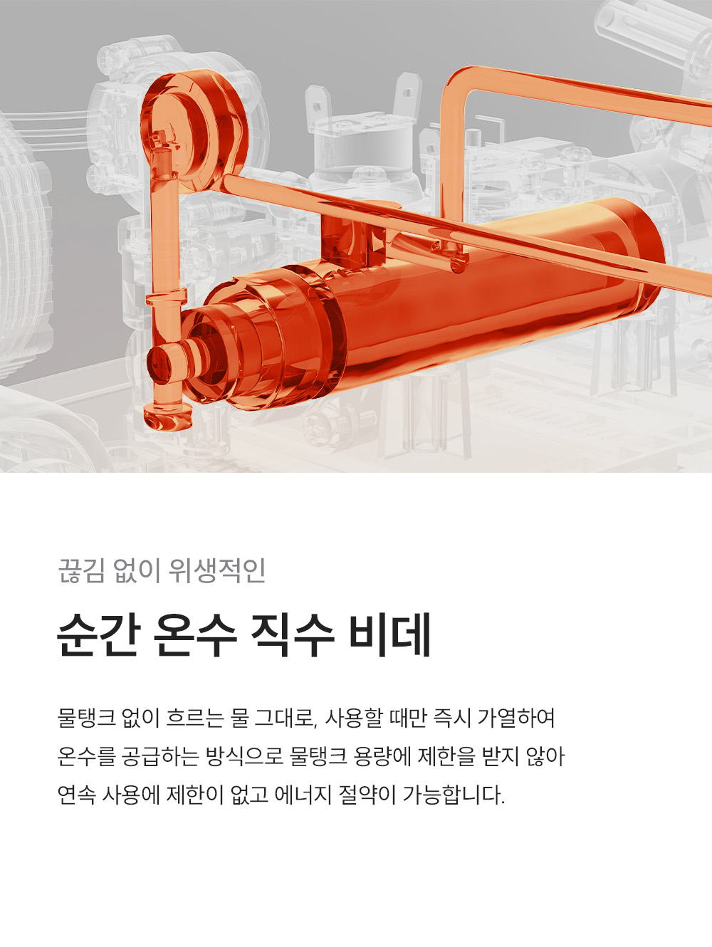 제품크기 : 375 x 505 x 93 mm 주요기능 : 노즐자동세척, 무브세정, 절전, 어린이, 직수, 방수, 리모컨 방문주기 : (셀프관리): 6개월필터발송,12개월관리 (방문관리): 6개월 의무사용기간 : 5년 소유권 이전기간 : 5년 등록설치비 : 면제 |
