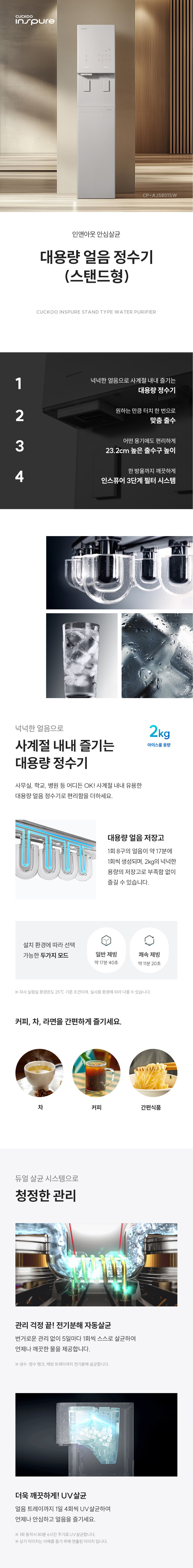쿠쿠 CP-AJS801SW 대용량 얼음정수기렌탈 CP-AJS801SW 노블화이트 6년약정: 월42,900원 5년약정: 월44,900원 3년약정: 월46,900원 제품크기 : 289 x 527 x 1,305 mm 제품용량 : 냉수3.0L,정수직수, 온수3L ,얼음2KG 주요기능 : 얼음, 냉수, 온수, 정수, 직수, 살균, 방문관리, 셀프관리, 대용량 설치형태 : 스탠드 방문주기 : 4개월 의무사용기간 : 6년 소유권 이전기간 : 6년 등록설치비 : 면제 렌탈요금 : 월 42,900원 제휴카드 : 월 29,900원 온라인 렌탈문의 네이버 톡톡 이전글 다음글 목록 상품특징 본문 이전글 다음글 목록