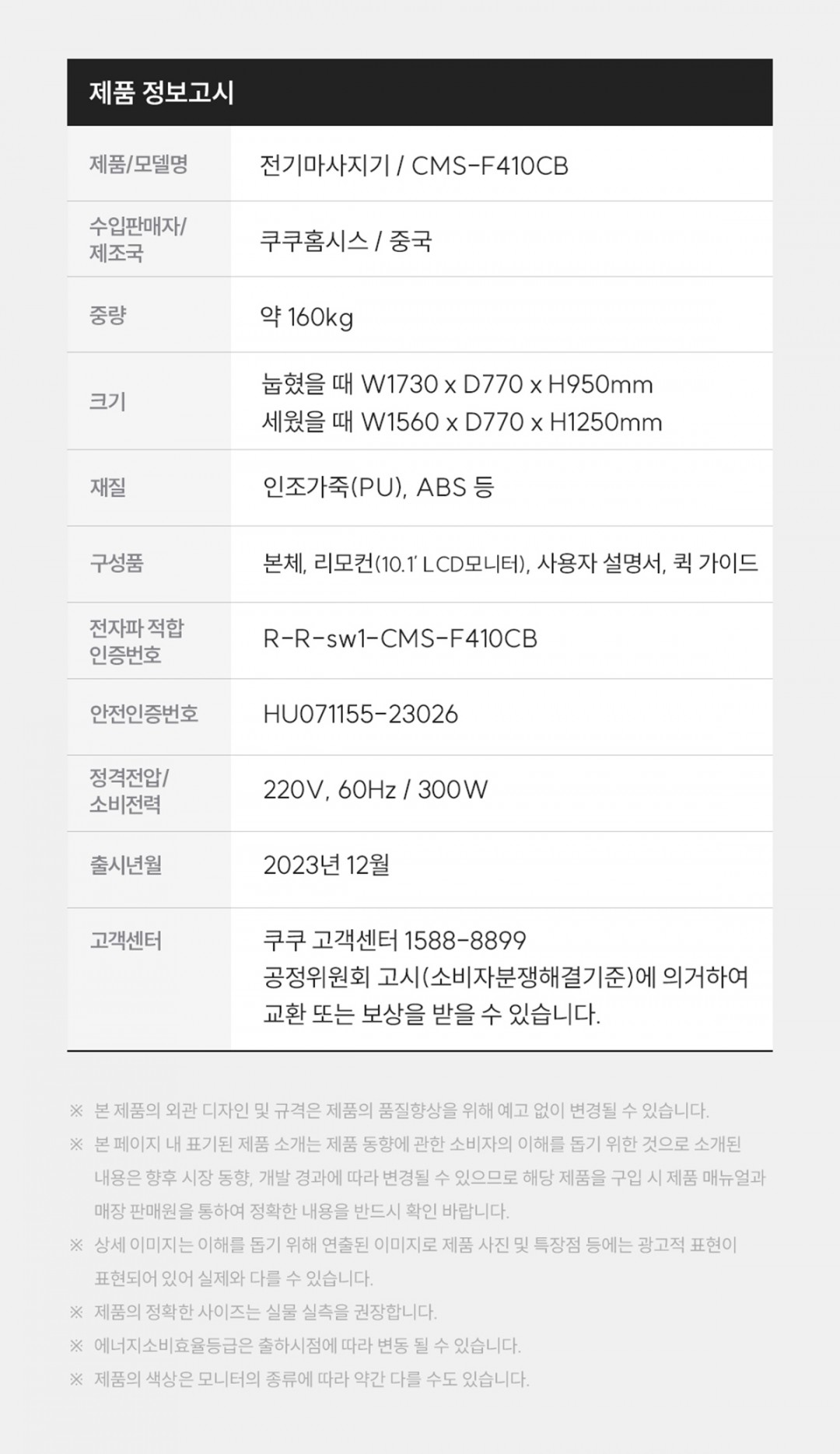 쿠쿠 CMS-F410CB 리네이처 안마의자렌탈 CMS-F410CB 그레이브라운 6년약정: 월99,000원 5년약정: 월109,000원 39개월약정: 월159,000원 제품크기 : 1560(W)×770(D)×1250(H)mm 주요기능 : 리모컨, 에어백, 블루투스, 온열 방문주기 : 12개월관리 의무사용기간 : 6년 소유권 이전기간 : 6년 등록설치비 : 면제 렌탈요금 : 월 99,000원 제휴카드 : 월 86,000원 온라인 렌탈문의 네이버 톡톡 이전글 다음글 목록 상품특징 본문 이전글 다음글 목록